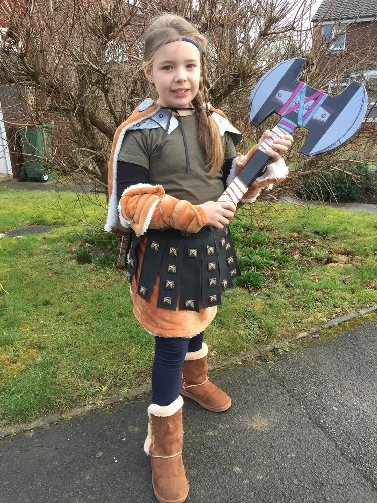 One of the listed items was the book of How To Train Your Dragon. Always keen to be a powerful female, SilentJudge decided she would like to be Astrid Hofferson. It turns out that Astrid does not actually feature in the books at all and was, in fact, created for the film adaptation. We weren't going to let this stop us though. Our reasoning is that without the books there would have been no movie and, since the film/tv version, there are now books using the increased cast of characters.